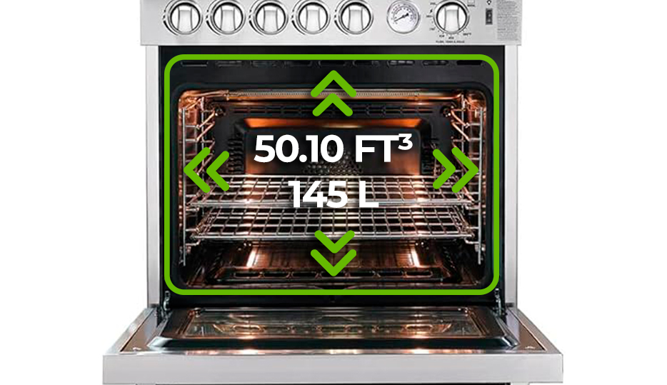 | Capacidad del Horno | 5.10 ft³ (145 L) |