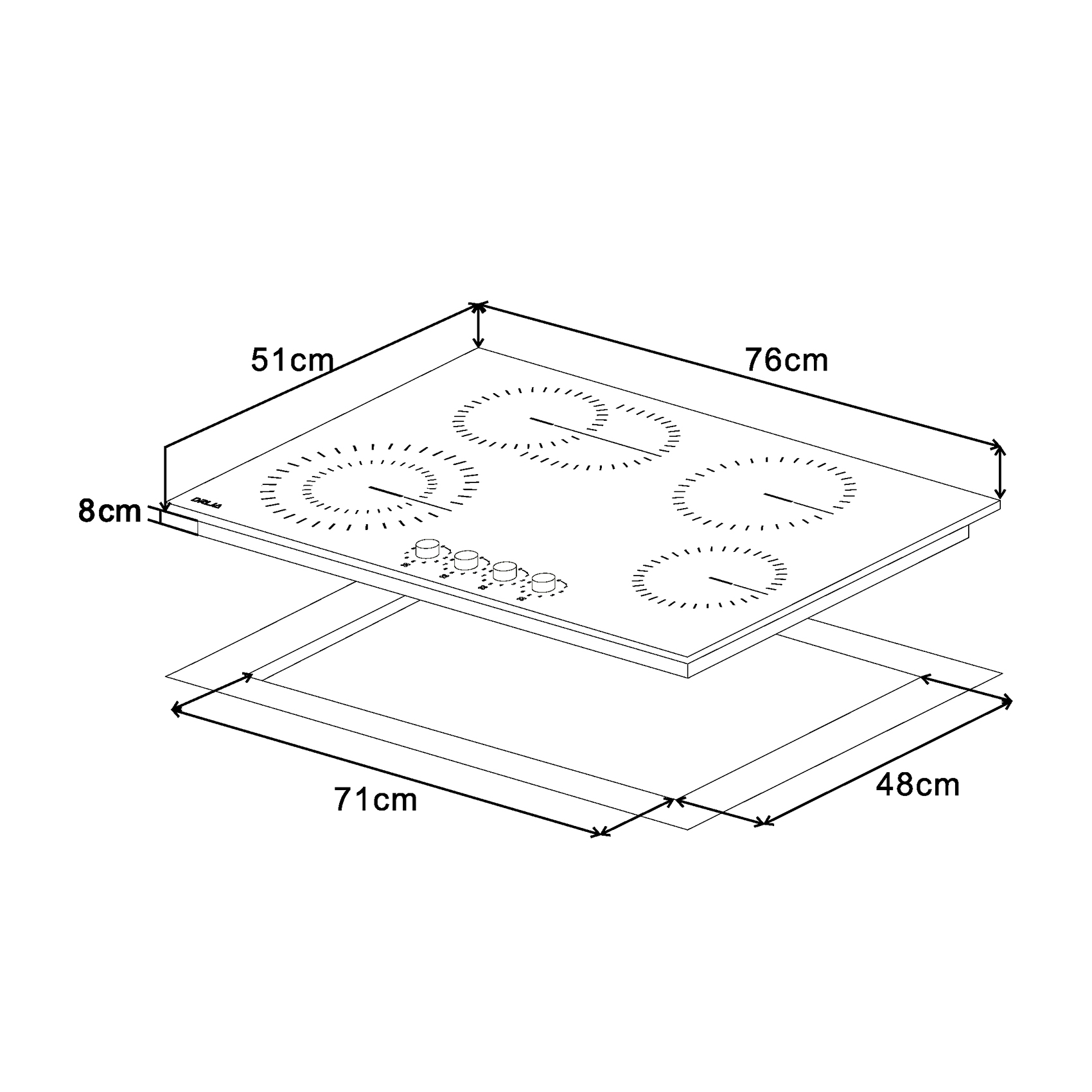 El tope eléctrico Bari 76 combina diseño elegante, funcionalidad expandible y potencia avanzada. Sus 76 cm de ancho brindan mayor comodidad al cocinar, mientras que sus zonas radiantes EGO con control independiente y perillas metálicas aseguran precisión, eficiencia y estilo en cualquier cocina.