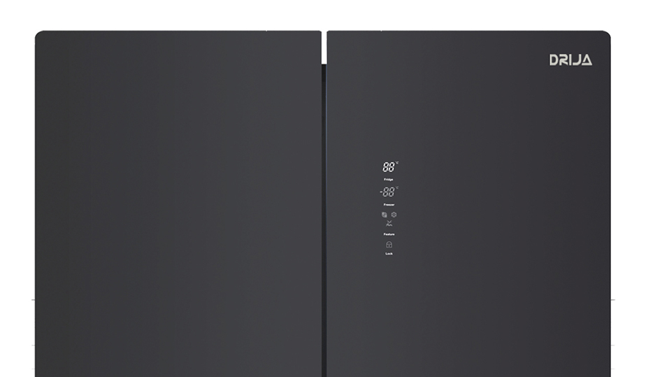 El BLACK-19D4P de DRIJA, con acabado en vidrio templado espejo negro, ofrece una capacidad de 17.9 P³ / 508 L y un diseño French Door con 3 niveles en el congelador para una organización óptima de los alimentos. Su sistema Ultra Fast Cooling garantiza un enfriamiento rápido y eficiente, mientras que las bandejas de vidrio templado y la superficie de fácil limpieza aportan durabilidad y practicidad. Además, cuenta con control de temperatura digital para un ajuste preciso.
