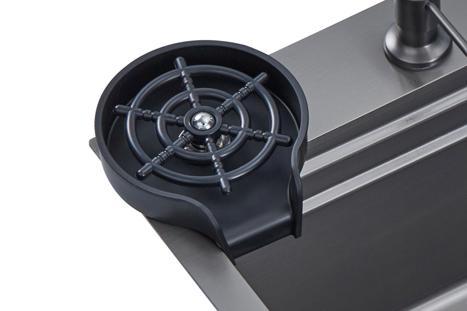 Enjuagador de vasos a presión que elimina residuos al instante; ideal para copas, tazas y botellas, con limpieza rápida y sin esfuerzo.