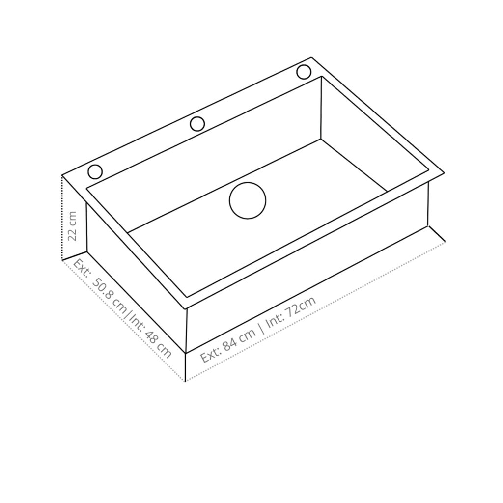 | Grifería | Monomando extraíble de acero inoxidable tipo cascada (fría/caliente) con cuello giratorio |