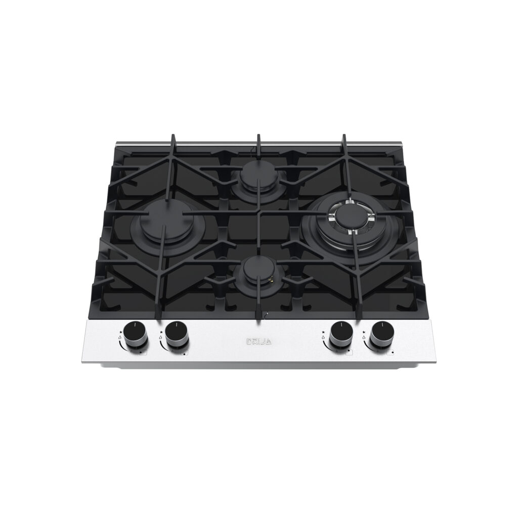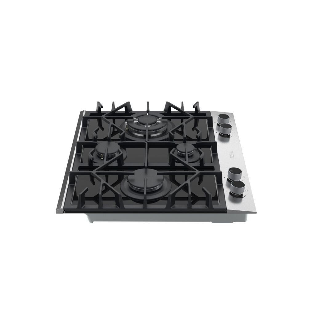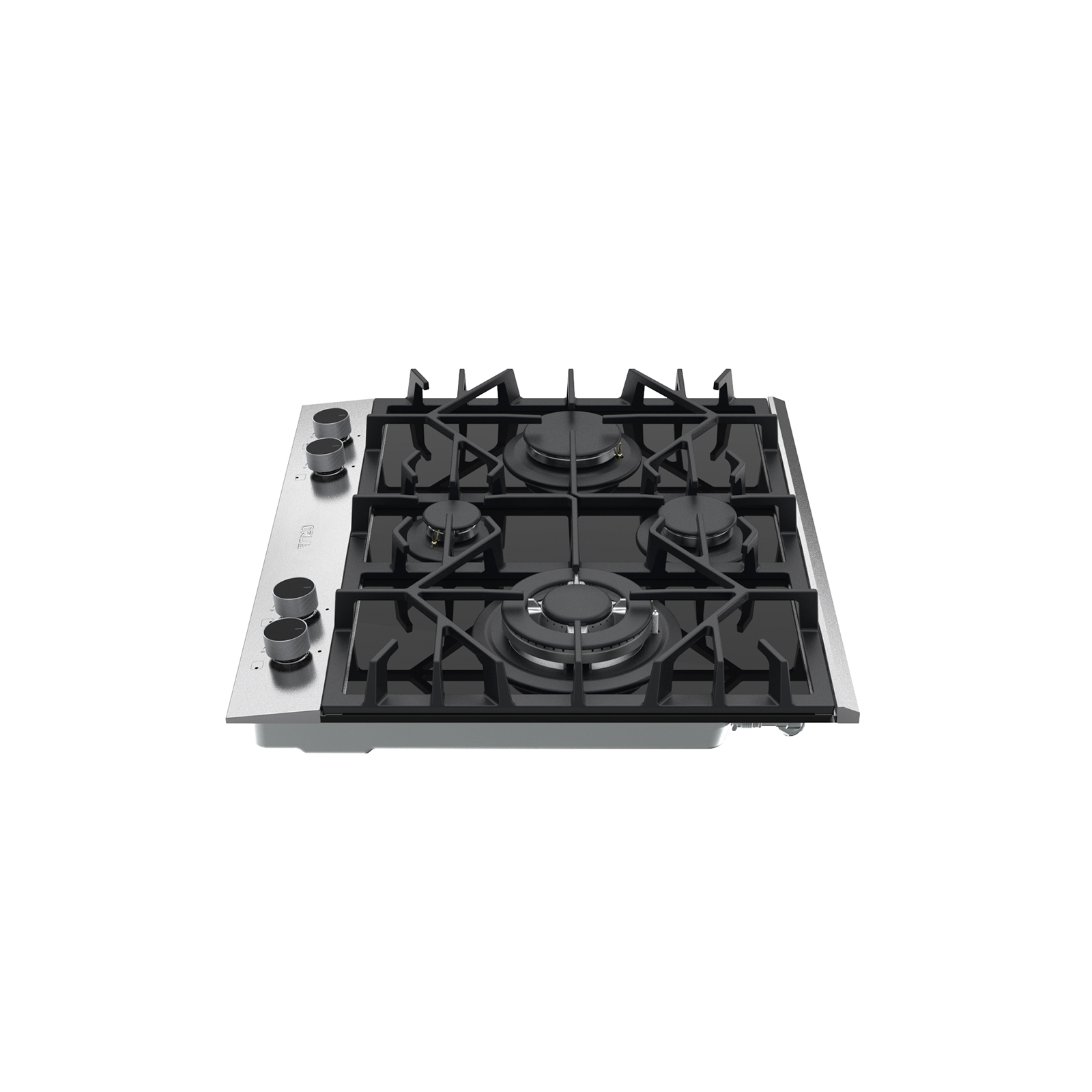 La superficie de acero inoxidable cepillado es elegante, fácil de limpiar y resistente al desgaste. Las parrillas de hierro colado en color negro mate aportan un toque industrial sólido y atractivo.