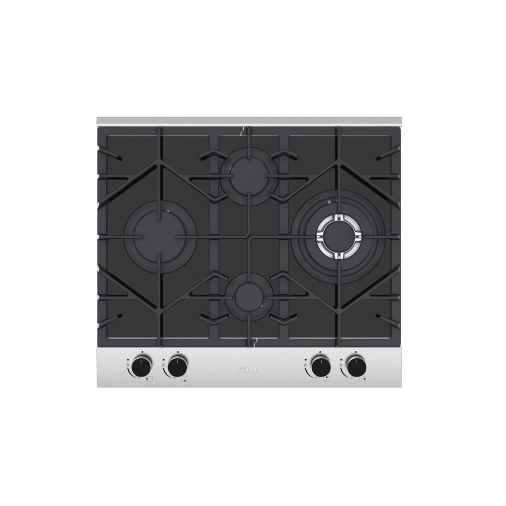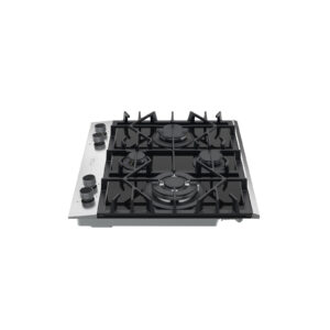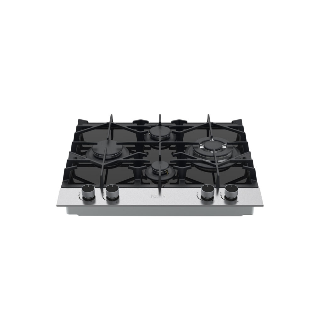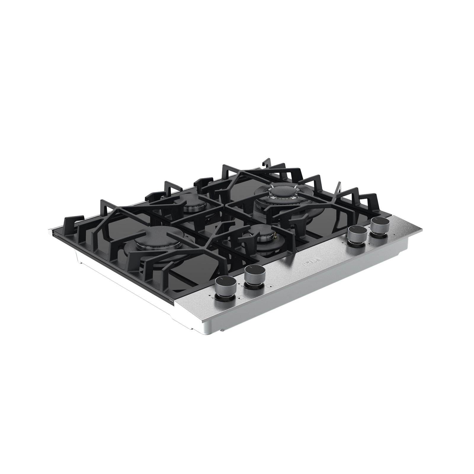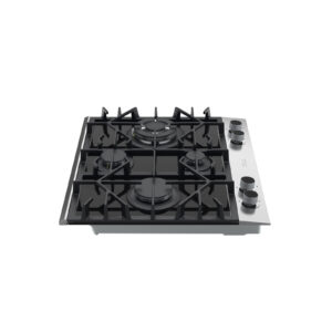 Estufa de empotrar de 60 cm con elegante superficie combinada de acero inoxidable cepillado y vidrio templado negro de 8 mm. Equipada con cinco quemadores de aluminio SABAF y parrillas de hierro colado, ofrece durabilidad, diseño moderno y una cocción precisa en todo momento.