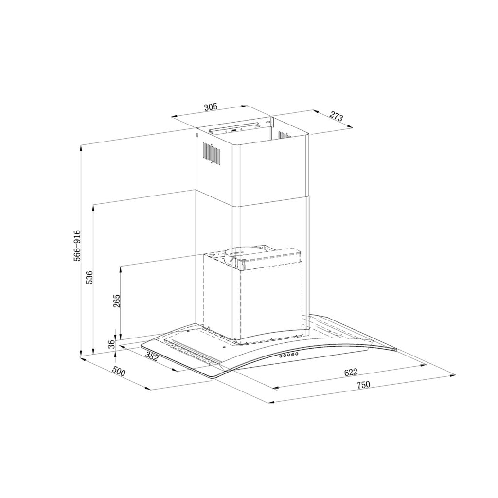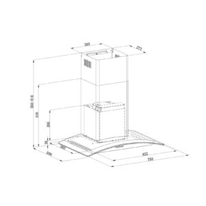 Campana decorativa de 76 cm en acero y vidrio templado curvo. Cuenta con panel de botones, doble sistema de filtrado, luces LED y diseño con chimenea ajustable. Ideal para cocinas modernas con estilo y funcionalidad.