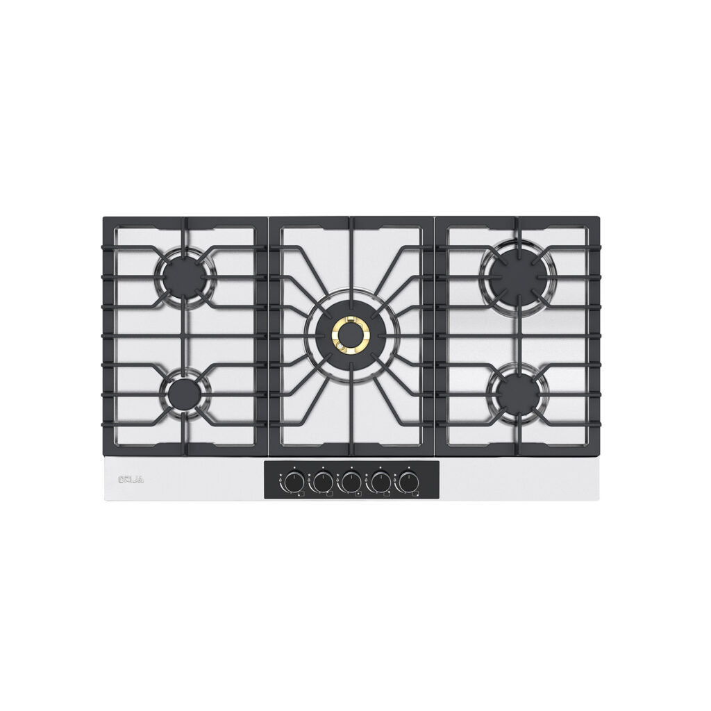La Lazio 90 destaca por su imponente presencia y eficiencia premium. Fabricada con acero inoxidable brillante, perillas de lujo y parrillas continuas de hierro colado, esta estufa de 90 cm está pensada para quienes exigen poder, seguridad y estética en su cocina.