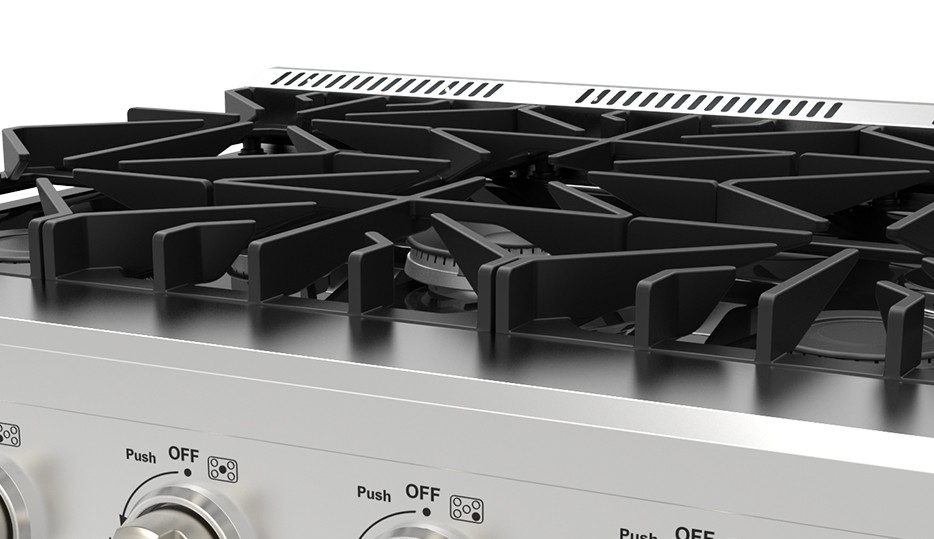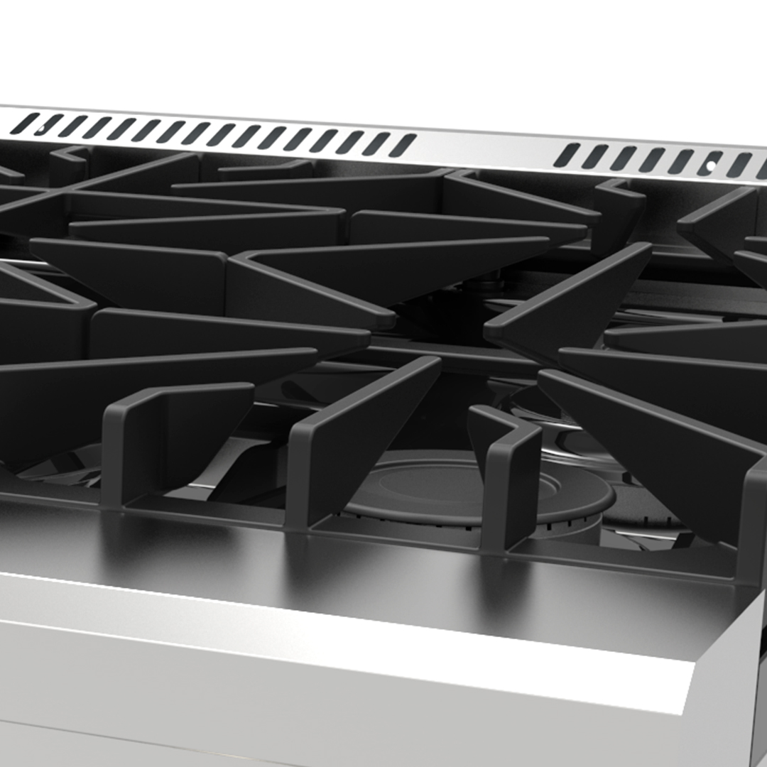 Disfruta de la comodidad y seguridad de las rejillas continuas de hierro colado, que proporcionan una base excepcionalmente estable para tus ollas y sartenes, garantizando años de resistencia.