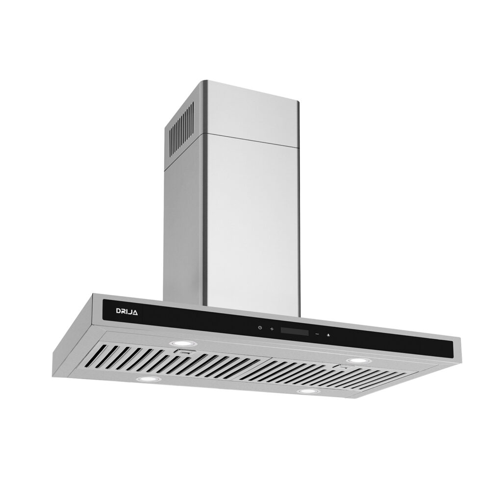 Campana tipo isla de 76 cm con diseño moderno y compacto. Cuenta con doble panel digital, gran capacidad de extracción, 4 luces LED, doble chimenea ajustable y sistema de filtrado completo para alto rendimiento.