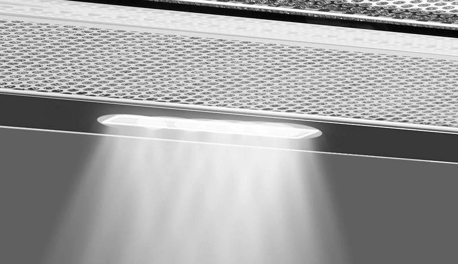 Iluminación uniforme y eficiente que mejora la visibilidad al cocinar, con bajo consumo energético.