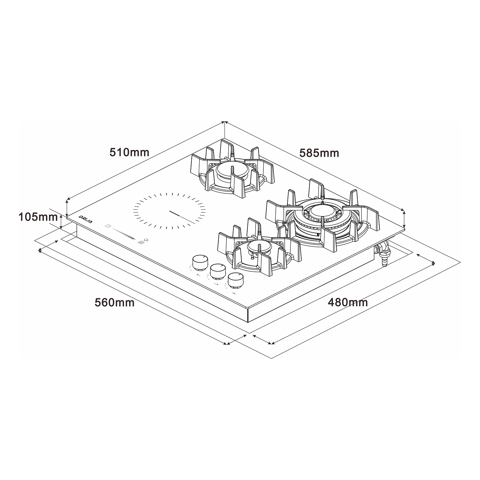 | Quemadores | 3 a gas (11,600 | 6,000 | 3,000 BTU) + 1 eléctrico (1.2 kW – 16.5 cm diámetro) |
