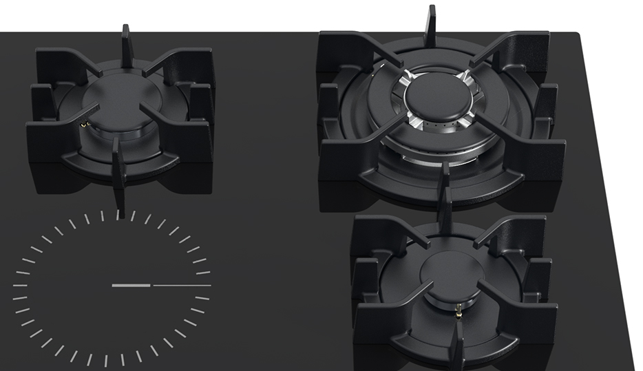 Ideal para cocinar con diferentes intensidades gracias a su quemador triple corona, semi-rápido y auxiliar.