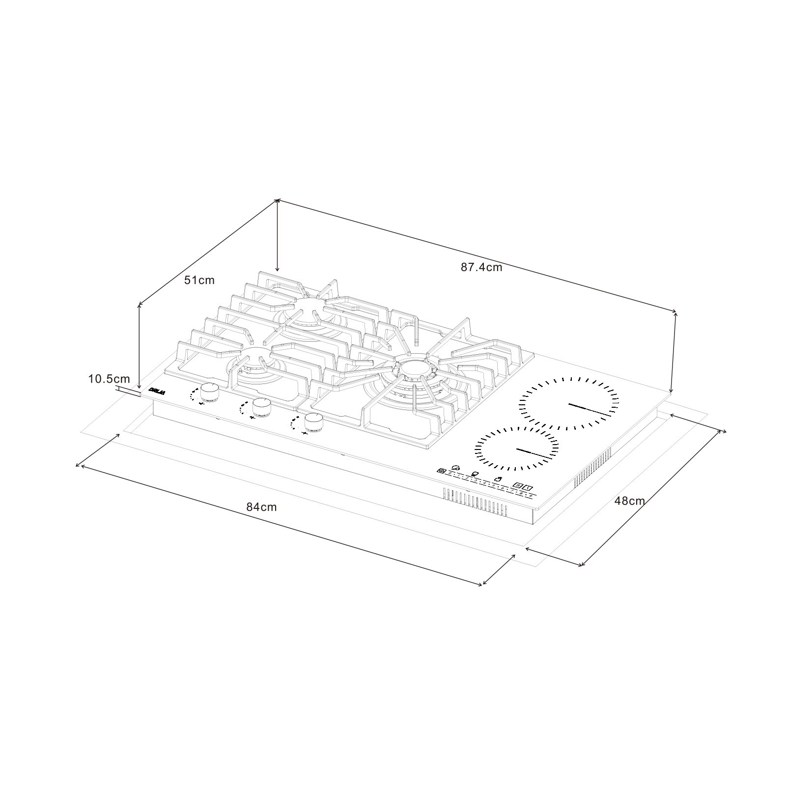 La Sicilia 90 Touch es la elección ideal para cocinas contemporáneas que exigen máximo rendimiento, diseño exclusivo y tecnología segura. Esta estufa híbrida empotrable combina 3 quemadores a gas con 2 zonas eléctricas radiantes EGO, controladas por perillas metálicas y slider touch para una experiencia de uso práctica, precisa y sofisticada.