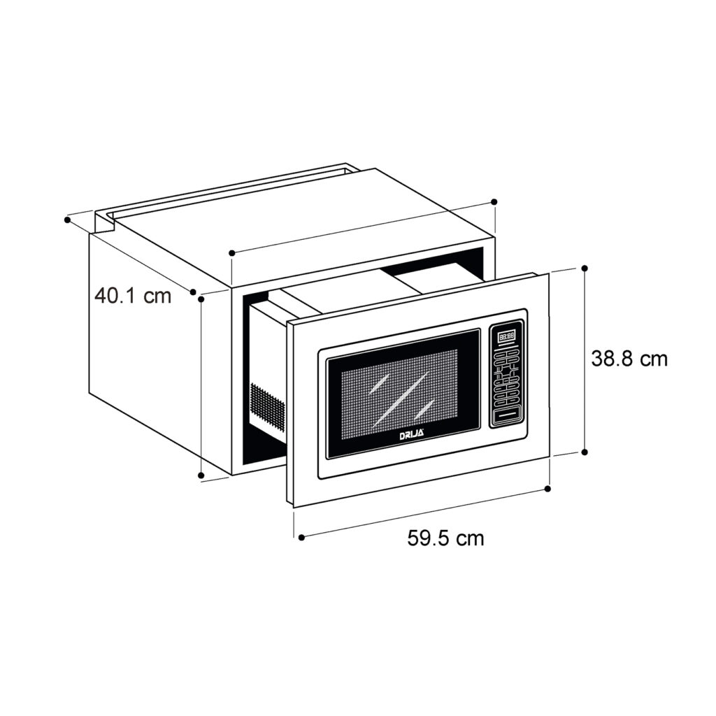 El microondas empotrable Sorrento Black 25L de Drija ofrece tecnología moderna, estilo sofisticado y funcionalidad intuitiva. Equipado con grill de cuarzo, panel digital con temporizador y cavidad interior en acero inoxidable, este modelo destaca por su diseño “trim” con apertura por botón, ideal para cocinas elegantes y prácticas.