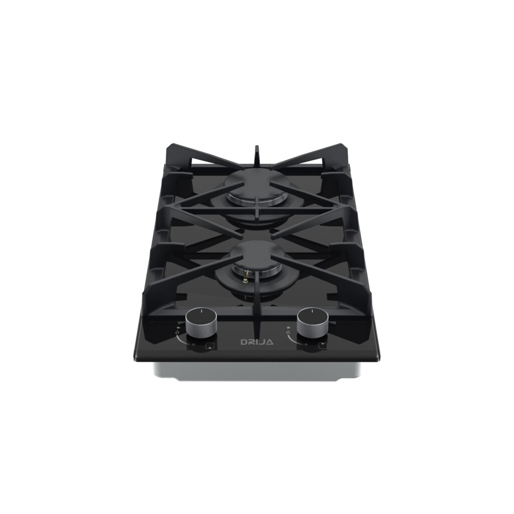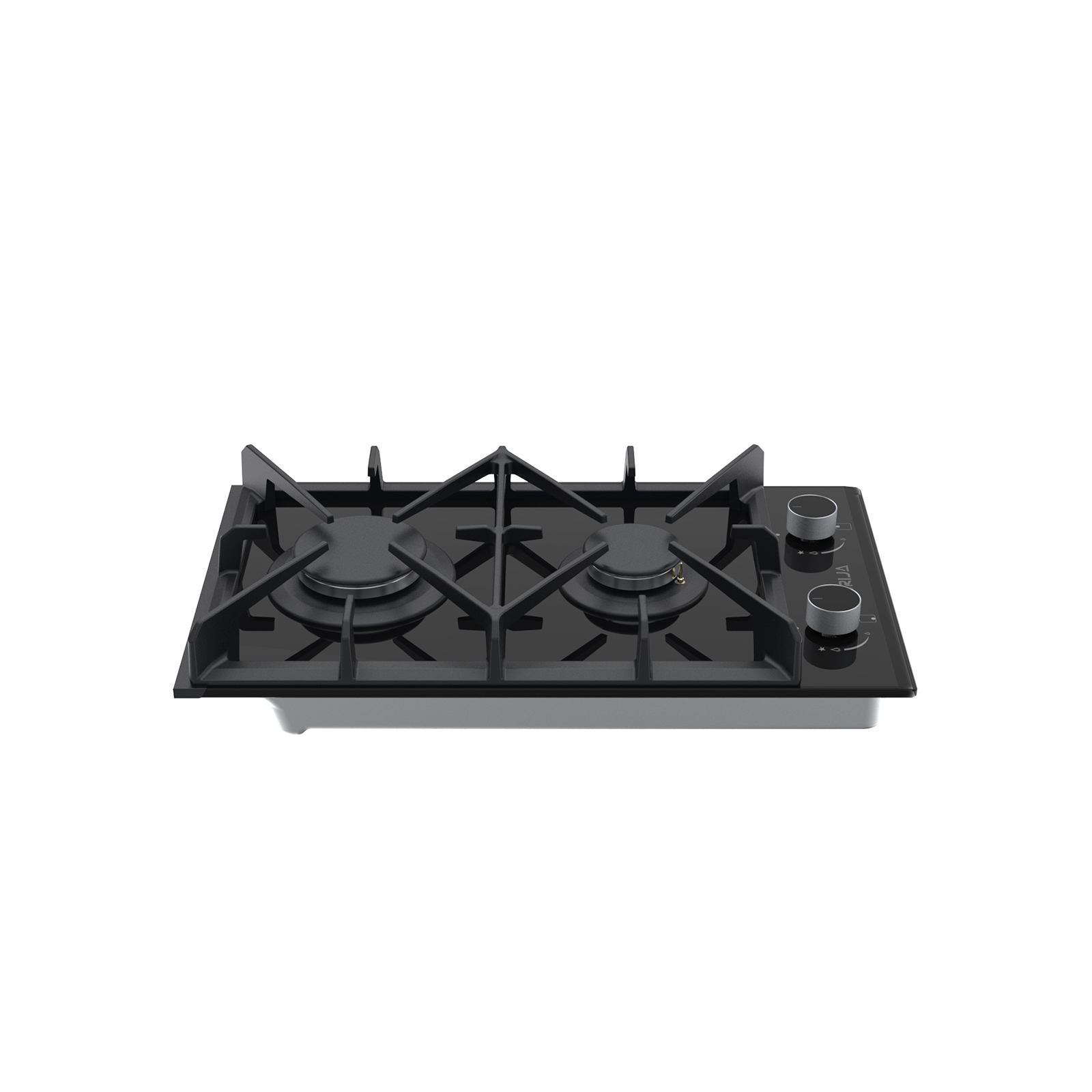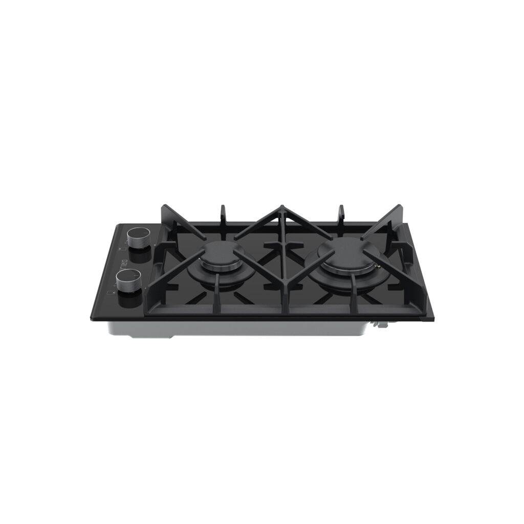 Estufa compacta de 30 cm con superficie de vidrio templado negro, ideal para cocinas pequeñas. Incorpora quemadores SABAF de alta eficiencia, parrillas robustas de hierro colado y encendido eléctrico integrado.