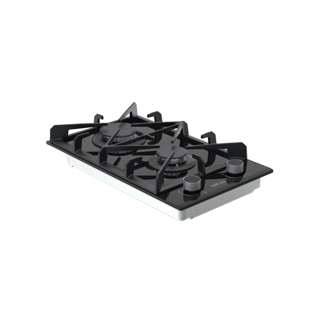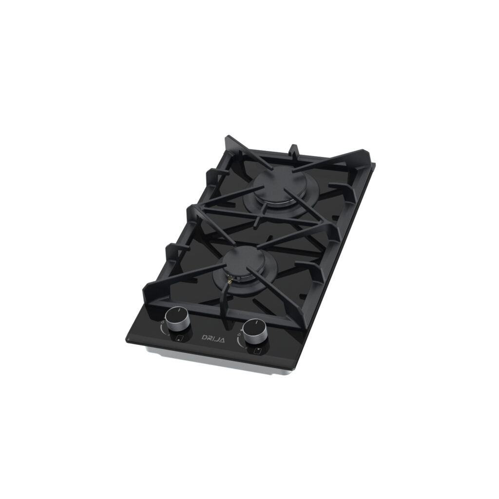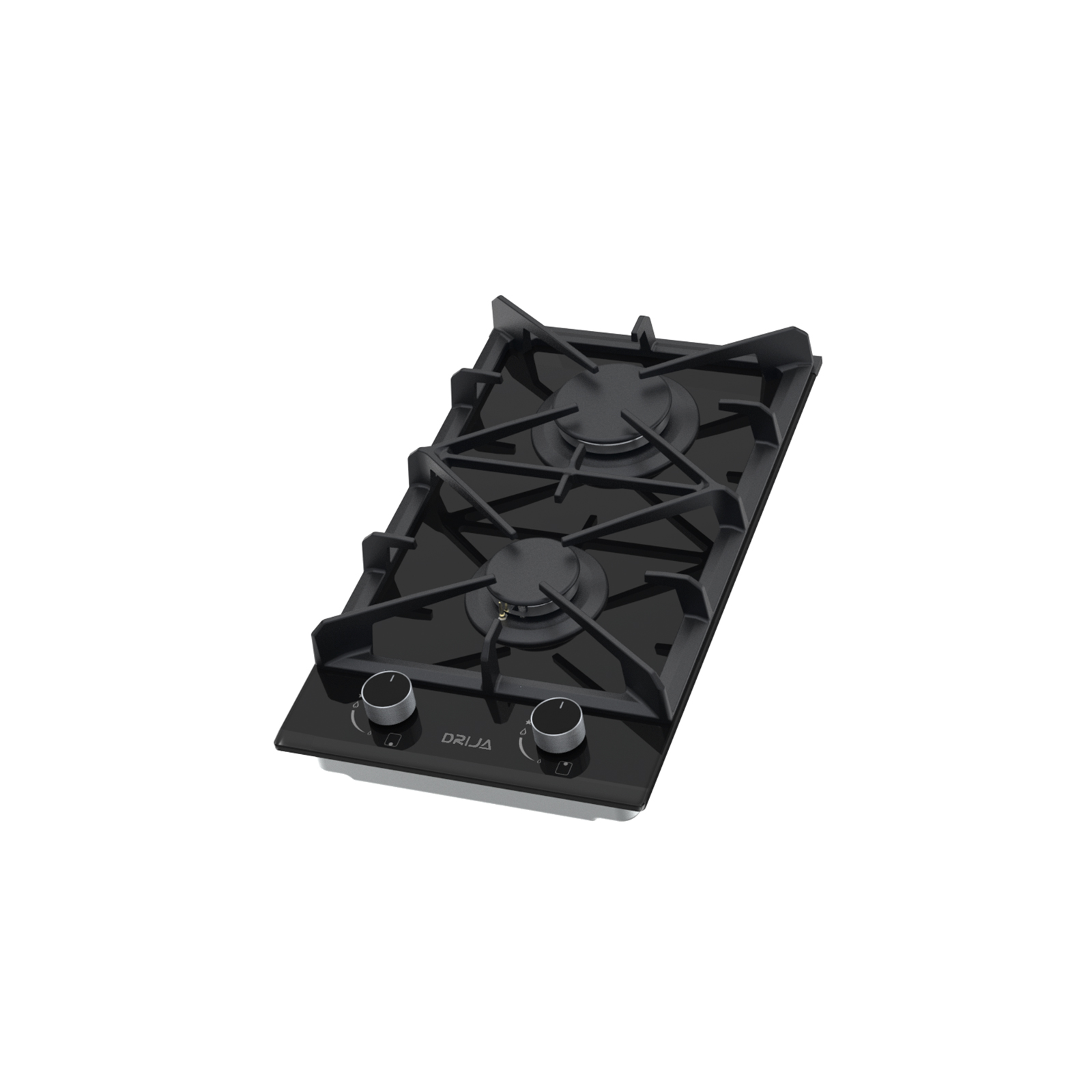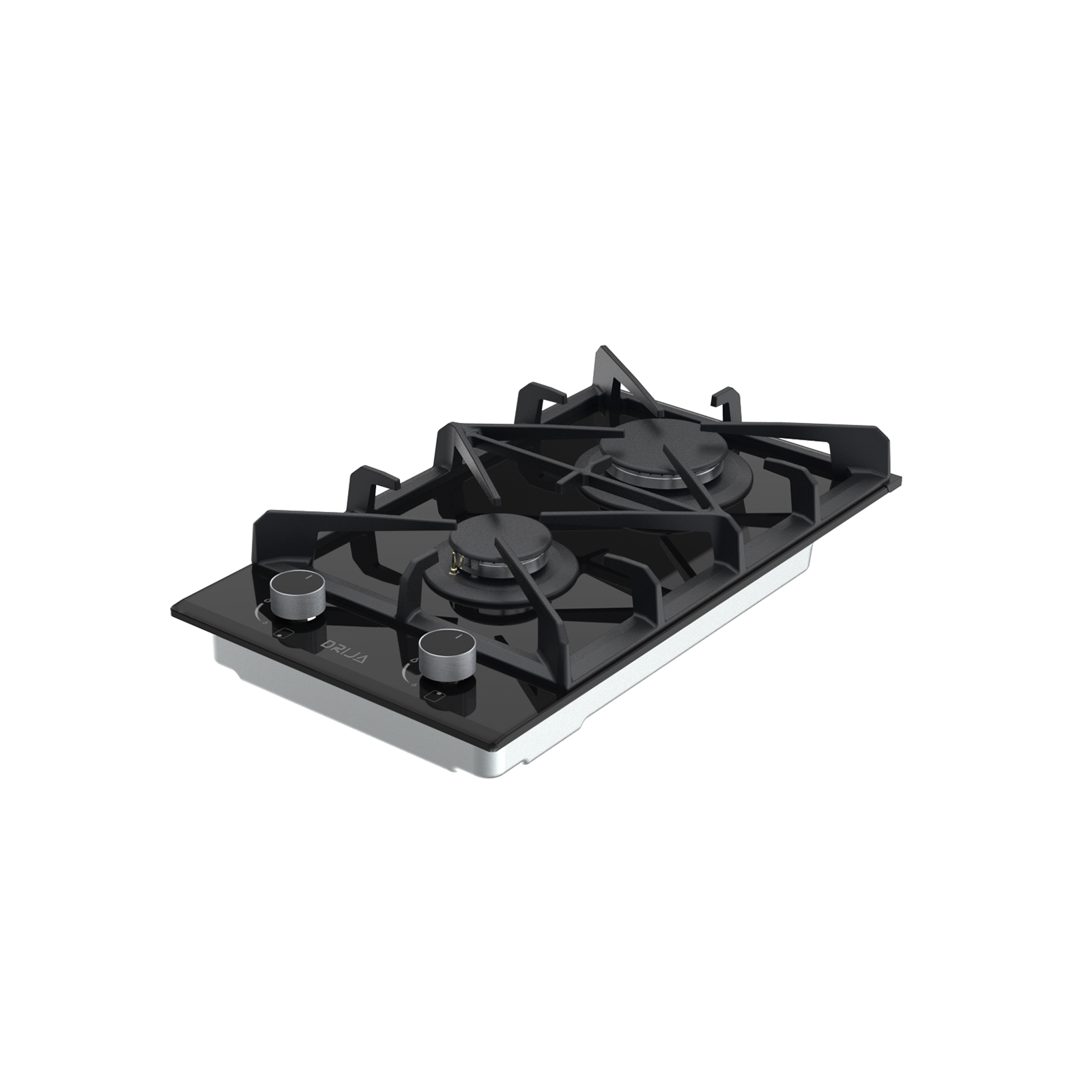 Estufa compacta de 30 cm con superficie de vidrio templado negro, ideal para cocinas pequeñas. Incorpora quemadores SABAF de alta eficiencia, parrillas robustas de hierro colado y encendido eléctrico integrado.